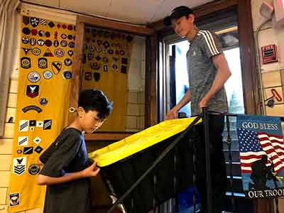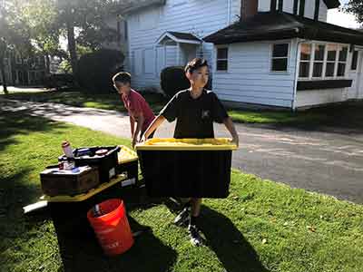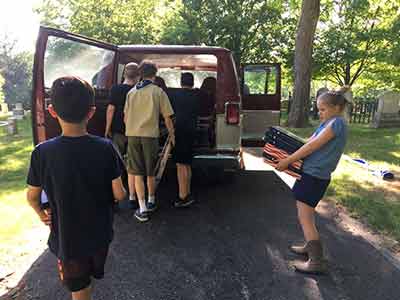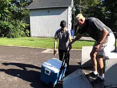 Helped with the loading of the grill and other essential items for the Pittsford Food Truck & Music Fest the night before the event. The Post has a golf cart and trailer that we loaded.