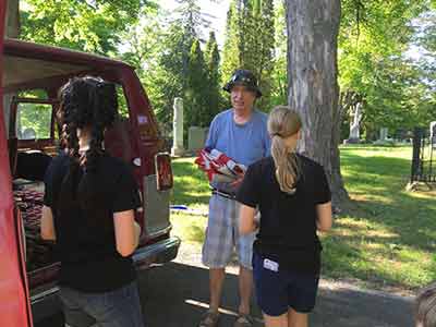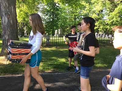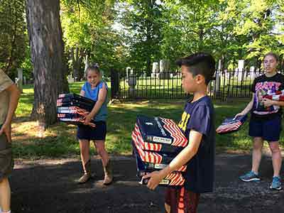 Memorial Day starts very early in the morning for the members of the Rayson-Miller Post and that means for the members of Teens for Veterans as well. First on list is to put all the US Flags out on Flag Avenue in the cemetery before the ceremony.