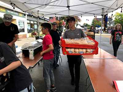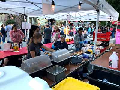 Each year the Town of Pittsford NY puts on an all day and into the evening, Food Truck & Music Festival down Main Street in the town of Pittsford. Food truck vendors offer their delicious fare and artists perform for the public. A fun event for all ages. Rayson-Miller Post 899 sets up their food tents and offers such items as Italian sausages with peppers and onions, hots and hamburgers and of course a variety of beverages. Teens for Veterans help with setting up, serving and tearing down after the event.